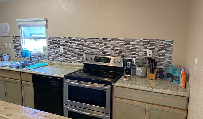 3 bdr, 2 bath house. 20 x 20 addition living room which is the front entrance and also connects to a door to walk out on the covered porch and a fenced front yard. There is a full sleeper sofa and 2 recliners. Entering the main house is another living room, a big open kitchen with an island and a dining area. Off the kitchen is the coffee bar with a desk which has a side door entrance and exit to the playground, firepit, and swimming pool area. Bedroom 1 is the master and has a king bed and en-suite bathroom with a garden tub and a 5ft walk-in shower. 2nd bedroom has 2 full beds. 3rd bedroom has a full bed and twin bunk bed. All rooms have TVs. There is also a back door leading to a fenced backyard. Included is a laundry shed with 2 washers and 2 dryers.